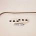 Description : Tige métallique droite terminée par une courbe. L'extrémité de la partie droite est munie d'un élément plat en forme d'ellipse pour permettre la préhension et pour conserver une bonne orientation. L'extrémité de la courbe est percée d'un trou.
