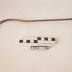 Description : Tige métallique droite terminée par une courbe. L'extrémité de la partie droite est munie d'un élément plat en forme d'ellipse pour permettre la préhension et pour conserver une bonne orientation. L'extrémité de la courbe est percée d'un trou.