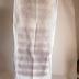 Description : Bande de tissu dont les lisières se trouvent sur les deux petits côtés. Les deux grands côtés n'ont pas d'ourlet mais sont légèrement éffrangés. Le tissage est en oblique.
