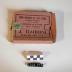 Description : Boîte en carton de couleur rose avec inscriptions noire de forme rectangulaire avec les faces latérales rabattables. Quand la boîte est vendue, elle est fermée par une bandelette de sécurité apposée sur les deux rabats. Sur la face principale se trouves les inscriptions suivantes : armes véritables de Saint Etienne - garanties - réparation en tout genre - prix modéres - J. Dagioni - Plan-du-Var (A.M.) Sur la face opposée description du contenu : cartouches chargés à rendement intégral garanti (description des cartouches) - n°de certificat 522 (tampon bleu) plomb durcio n°10 (tampon bleu)
