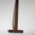 Description : Planchette de section rectangulaire (25,5x5 cm) échancrée en son centre sur un carré (5 cm de côté) qui reçoit perpendiculairement une autre planchette de section rectangulaire (64,5x2,5 cm) de façon à former un "T". Présence d'un trou (D: 1,2 cm) pour la suspension murale.
