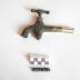 Description : Corps cylindrique à fond redressé par une rondelle et un écrou serré sur la tige de l'obturateur, muni d'une tubulure horizontale dont les trois derniers centimètres portent des traces d'étamage. La sortie est cylindrique et arquée. L'obturateur est tronconique, la base supérieur est prolongée par la clé de manœuvre. La base inférieure par une tige filetée. La lumière de passag est rectangulaire (1,2x0,5 cm)