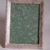 Description : Cadre rectangulaire composé d'un encadrement en bois (lg 3 cm) biseauté et recouvert d'un papier de nuance grise, imitation peau de serpent; une plaque de verre ; un support carton fort de couleur orange à l'extérieur, vert imitation marbre à l'intérieur. Sur ce carton est fixé un pied chevalet orange, support et pied glisse dans une gouttière permettant ainsi de les sortir du cadre pour introduire la photo sous verre. Le pied de chevalet permet de présenter le cadre dans deux positions : en hauteur ou en largeur.
