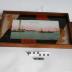 Description : Plateau rectangulaire en bois avec rebord (Ht : 3 cm). Le fond est une fine plaque de bois clouée sur les rebords. Il retient la plaque de verre. Deux poignées en bois rectangulaire (10x2cm).
