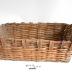 Description : Récipient en osier, sur plan rectangulaire (base : 56x32 cm), à bords droits, moyens, évasés (H : 23 cm, rebord sup : 66 x 45 cm). L e haut de chacune des petites faces verticales comporte une anse semi-elliptique, fixe, verticale. (L : 16 cm H : 5 cm).