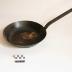 Description : Récipient circulaire à fond plat ( D : 19 cm) , à bords bas évasés. Poignée en métal noir avec à l'extrémité un trou de suspension.