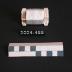 Description : Tube central en carton ( D : 0,7 cm) sur lequel est fixée une étoile à cinq branches formant la bobine. Sur celle-ci est enroulé du fil blanc. Sur les partis visibles du caron : " 3 gr à la clé L.V fil mercerisé - Floche perlé n°100 Paris (France) et le dessin d'une clé."