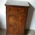 Description : Meuble sur plan quadrangulaire, aux angles chanfreinés sur la face avant. Le dessus est occupé par une plaque de marbre (40 x 30,2 cm ép. 0,8 cm). La partie supérieure est dotée d'un tiroir (H : 9,7 cm, Lg : 26,8 cm, P 26,4 cm). Au-dessous du tiroir s'ouvre une porte (H : 44,4 cm, Lg : 26,8 cm, ép. 2,1 cm) munie d'un bouton-poignée au milieu à gauche (D 2,7 cm). Le tiroir comporte d'ailleurs, juste en son milieu, un bouton de même diamètre. La base du meuble est haute de 9,7 cm. Les deux pieds avant sont plus larges que les pieds arrière. Meuble de style Louis-Philippe.