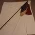 Drapeau tricolore en toile, fixé sur un manche en bois par six clous larges.