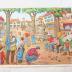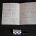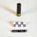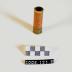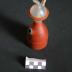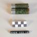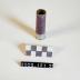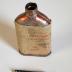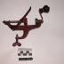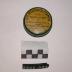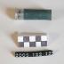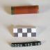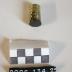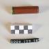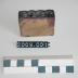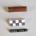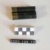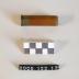 Description : Parallélépipède en bois surmonté de moulures métalliques en relief formant un dessin ornemental. Le dessin comporte quatre fistons et quatre fleurs. Le motif est sur une plaque en métal clouée sur le bois.