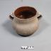 Description : Récipient en céramique à 2 anses, orné d'un trait parallèle au col, sur la partie supérieure. Le récipient est enduit à l'intérieur.