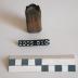 Description : Parallélépipède en bois surmonté de moulures métalliques en relief formant un dessin ornemental. Le parallélépipède a deux bases inégales. Le motif représente un arc trilobé.