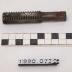 Description : Tige d'acier comprenant quatre parties : - une extrémité pointue ; - puis, dans le sens de la longueur, trois rangée de stries horizontales, chacune étant séparée de l'autre par un évidement ; - ensuite, toujours dans le sens de la longueur, un tronçon où le métal est lisse (section circulaire) ; - enfin, l'autre extrémité (sup), de section carrée, l'embase étant percée.