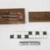 Description : Boîte parallélépipède rectangle sur laquelle coulisse un couvercle amovible. A l'intérieur de cet objet se trouve trois emplacements pour loger des tarauds. La boîte en contient trois.