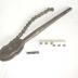 Description : Un manche cylindrique muni de 2 mâchoires ovales crenelées fixes. sommet des mâchoires est crénelés. Une chaîne de 15 maillons est fixée à l'aide d'une vis entre les deux mâchoires. Cette chaîne permet de serrer des tubes de différents diamètres.