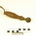 Description : Platine percée de quatre trous (D O,2 cm environ). Elle est montée à soie noyée dans un manche en bois profilé.