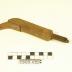 Description : Gouge montée à soie noyé sur un manche de section rectangulaire arrondi au sommet. Une languette de cuir réalisé à partir d'une ancienne chaussure en conservant deux œillets est clouée. Elle permet la suspension de l'outil