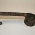 Description : Cylindre métallique (D : 5,4 cm H : 3,5 cm) à lèvre rivée. Il est perforé irrégulièrement de 4 trous d'aération. Il se prolonge un pied en L.