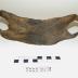 Description : pièce de cuir de section rectangulaire arrondie aux deux extrémités. Elle est perforée aux deux extrémités par des trous ovales (L : 5 cm lg : 3,5 cm).