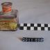 Description : Récipient en verre transparent sur plan rectangulaire (Ht : 5 cm) avec un goulot cylindrique terminé par un rebord. (Ht du goulot : 2,5 cm - D ext 2,5 cm)