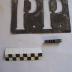 Description : Tôle fine de forme rectangulaire avec les lettres découpées : P.P