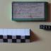 Description : Emballage pharmaceutique sur plan rectangulaire à bords droits (H : 0,8 cm). Une des grandes faces est crantée sur 3 cm. Une des faces latérales est prolongée par un passant en carton qui s'introduit dans le cran pour fermer l'emballage. L'emballage contient 2 doses de médicament (papier plié contenant de la poudre).
