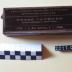 La partie inférieure est renforcée par un emboitage collé à la partie extérieure. Cet emboîtage dépasse de 0,6 cm le bord extérieur dont la hauteur est de 1,5 cm. La partie supérieure (H : 1 cm) s'embôte sur la partie inférieure et sert de couvercle. Il est rendu solidaire par collage le long d'un des grands côtés.