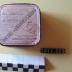 Partie inférieure de section carrée (7,5 cm de côté x 2 cm) réhaussée sur 1,2 cm. Cette boîte contient de la poudre. Couvercle (7,5 cm de côté x 2 cm)