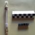 Description : Tube en verre dans lequel glisse un piston muni d'un tampon d'ouate. La fermeture hermétique de la seringue est assuré par un bouchon de liège. La seringue se termine à l'autre extrémité par une boule percée.