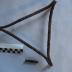 Description : trépied triangulaire en fer forgé composé de trois pièces métalliques pliés en "U" dont les extrémités forment les pieds.