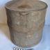 Description : Récipient sur plan circulaire à bord haut et droit renforcé au centre par trois nervures circulaires. Le fond conique est muni d'un rebord. Un couvercle conique, muni d'une poignée, s'emboîte dans le récipient. Une plaque soudée sur le couvercle identifie le propriétaire : "Barety, Puget-Théniers"