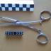 Description : Instrument médical articulé en X avec deux branches droites. Elles sont terminées à une extrémité par une boucle qui permet d'introduire un doigt afin de les actionner. L'extremité opposée possède une pointe. L'autre, deux pointes écartées entre lesquelles s'insère la pointe de la première branche de façon à former une griffe. L'intérieur des branches est striée sur 4,5 cm. Ces deux branches sont réunies par une vis autour de laquelle elles pivotent. Elles se séparent facilement pour faciliter le nettoyage. Un système cranté permet de les bloquer en position fermée (2 degrés de fermeture sont possible en fonction de l'objet à saisir. Les inscriptions sont gravées dans le métal.