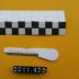 Description : lame en acier, denture fine, (L : 5 cm, lg visible 0,3 cm). La lame est entièrement enchassée dans uenmonture en plastique de couleur blanche. Cette partie enserre la lame sur toute sa longueur et se prolonge par une partie quasi ovale qui sert de préhension.
