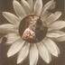 Description : Une marguerite blanche avec le coeur en médaillon. Dans ce médaillon un soldat et sa fiancée. Le soldat est en veste et calot bleu;, la fiancéée en rose, tient un bouquet de fleurs dans le bras droit.