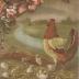 Description : Carte postale représentant une poule et des poussins en train d'éclore avec un cartouche en partie basse et un bouquet en partie haute. La scène se déroule en bordure d'un cours d'eau paisible en rase campagne.