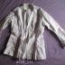 Description : Vêtement d'enfant à manches longues. Col droit bordé d'une dentelle brodée. Ouvert sur le devant. 9 boutonnières et boutons ( à gauche) en permettent la fermeture. (Tous les boutons sont absents) . Huit pinces lui donnent une taille très étroite. Un peu plus court à l'avant qu'à l'arrière qui est arrondi.