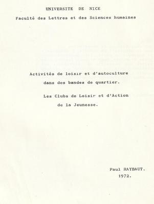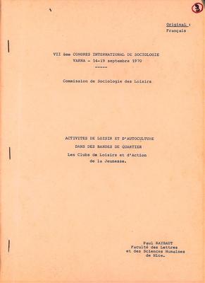 Activités de loisir et d'autoculture dans les bandes de quartier. Les Clubs de Loisirs et d'Action de la jeunesse dans "VIIème congrès international de sociologie, Varna, 14-19 septembre 1970."