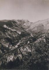 [Péone et les terrasses de culture sur la route de Beuil ]